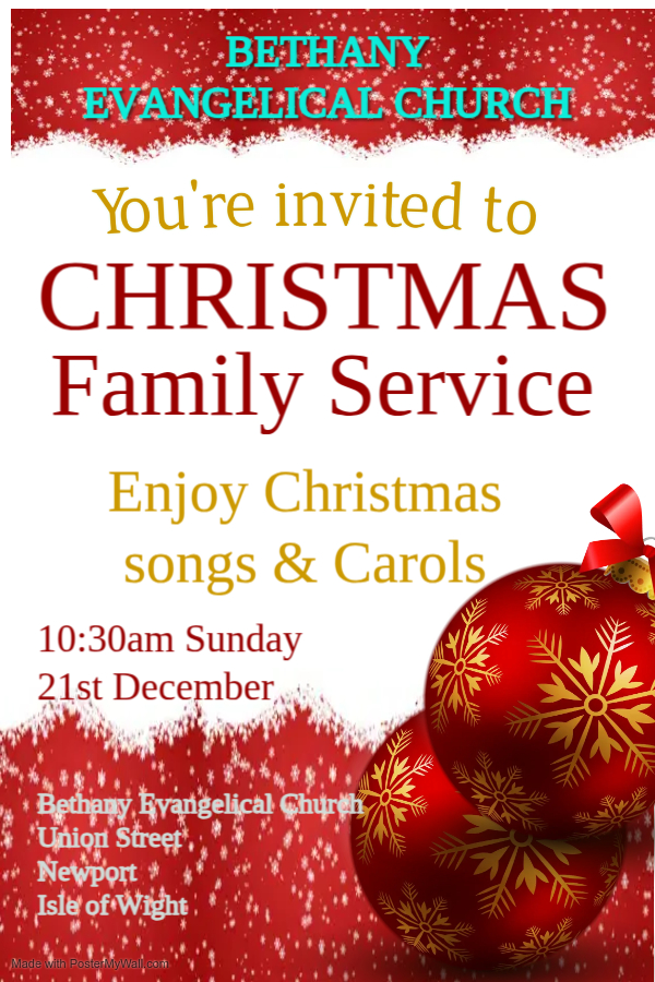 Join us for a family carol service at 10:30am. Refreshments afterwards.