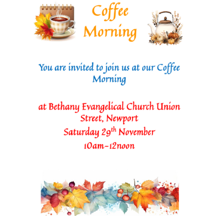 Please join Bethany for an Autumn Coffee morning on Saturday 29th November at 10 am to 12 noon.